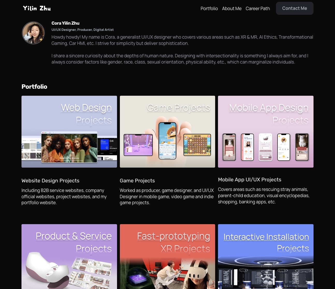 Yes! As a UI/UX designer, my portfolio website should also be clean and pretty, as containing the necessary information at the same time. I designed the information architecture, layouts, and aesthetic elements using WordPress, but I’m also skilled in Wix, Webflow, and other web-building platforms.